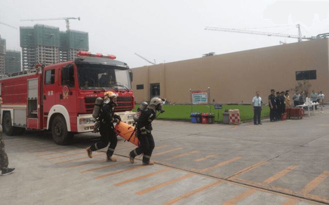公司和消防队结合实际情况,模拟技术中心综合楼一楼起火,并在综合楼门前成立了临时指挥部。火势刚开始,临时指挥部进行初期扑救,但火势愈演愈烈,难以有效控制,在汇报总指挥后,总指挥立即启动了紧急疏散应急预案,并向消防队求援,在按下报警按钮后,各分工小组各司其职,组织全员应急疏散,并联络外部救援力量支援,消防队到场后模拟了灭火与搜救过程,从警报拉响到疏散集合完毕共计用了3分01秒的时间。