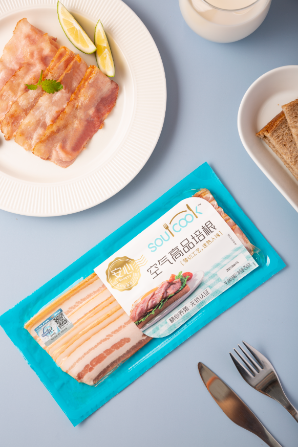 除了具有“无抗”特色的空气高品培根,soulcook旗下还开发了轻卡火腿切片及元气爽口香肠等产品,丰富早餐场景,品牌建议每日搭配面包、鸡蛋、牛奶等食物,既饱腹又能补充营养,用每天一刻钟的时间,让全家享用一顿营养的早餐时光。